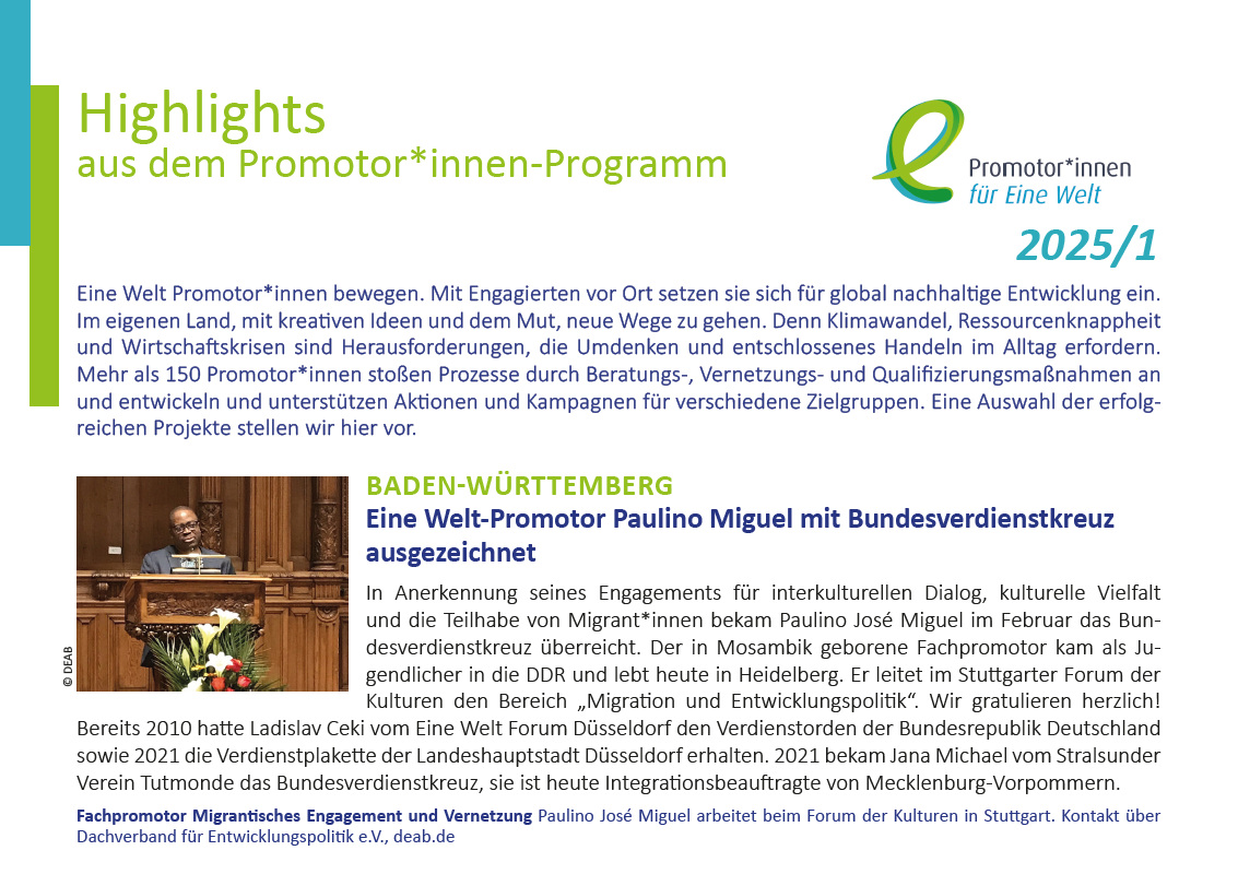 Eine Auswahl der erfolgreichsten Projekte unserer Eine Welt-Promotor*innen, drucken wir mehrmals pro Jahr in einem "Highlight-Flyer" ab.